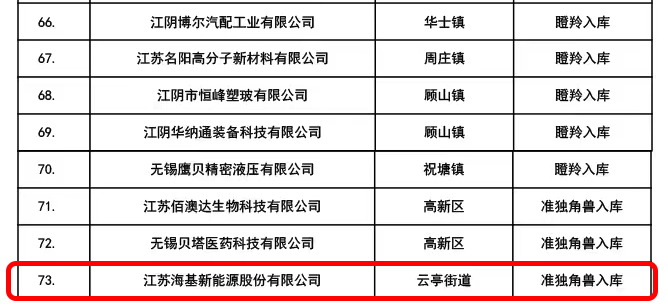 上榜!海基新能源入庫江蘇省“準(zhǔn)獨角獸企業(yè)”